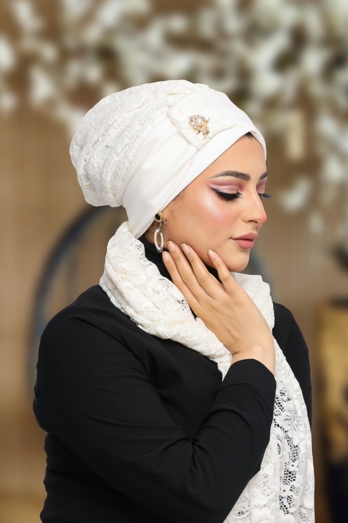 turban One piece with a brooch Dantel - Smile Turbans - 1153