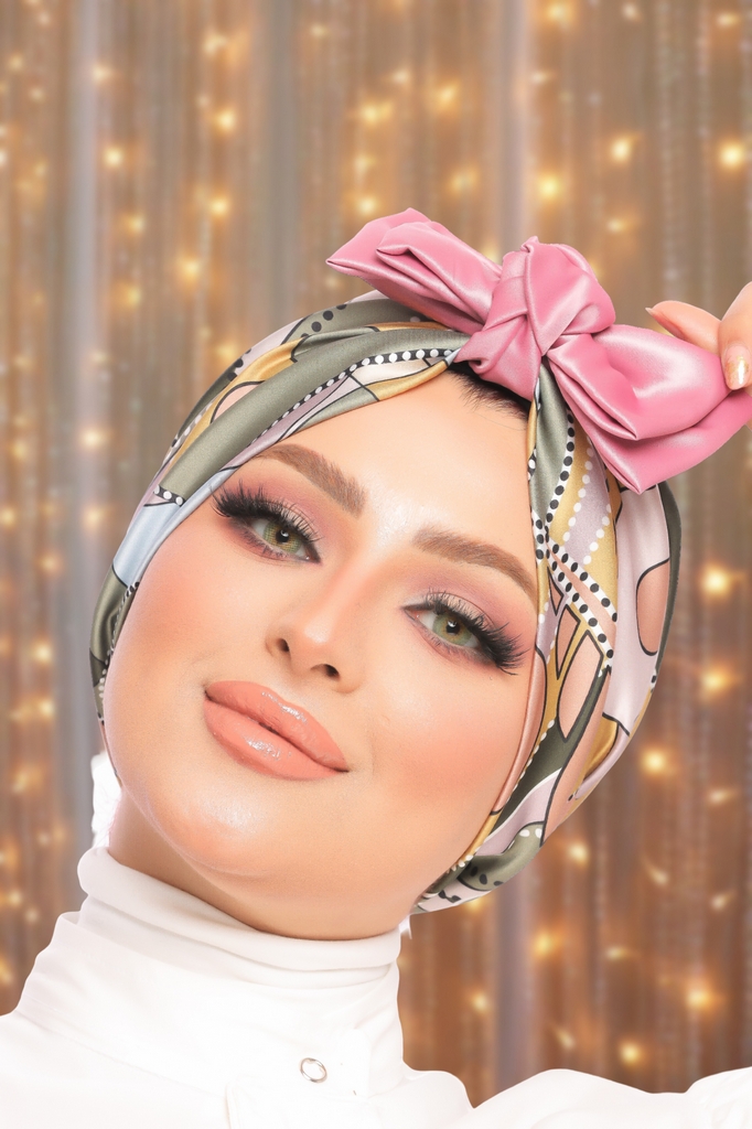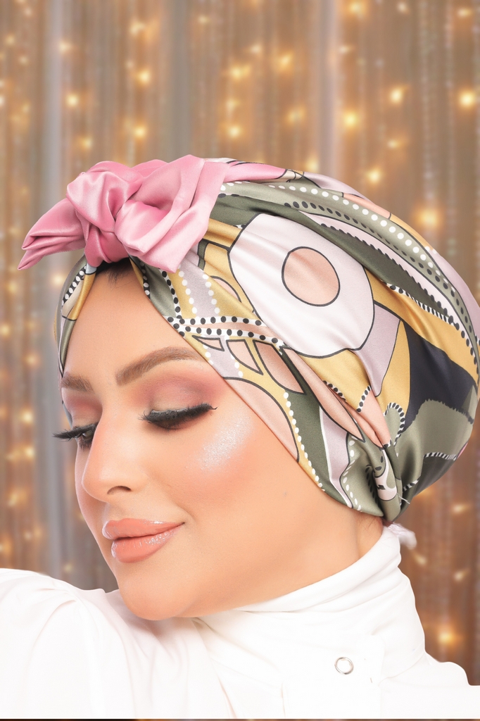 Turban & Scarf bow Armani satin material - Smile Turbans - 1504 -