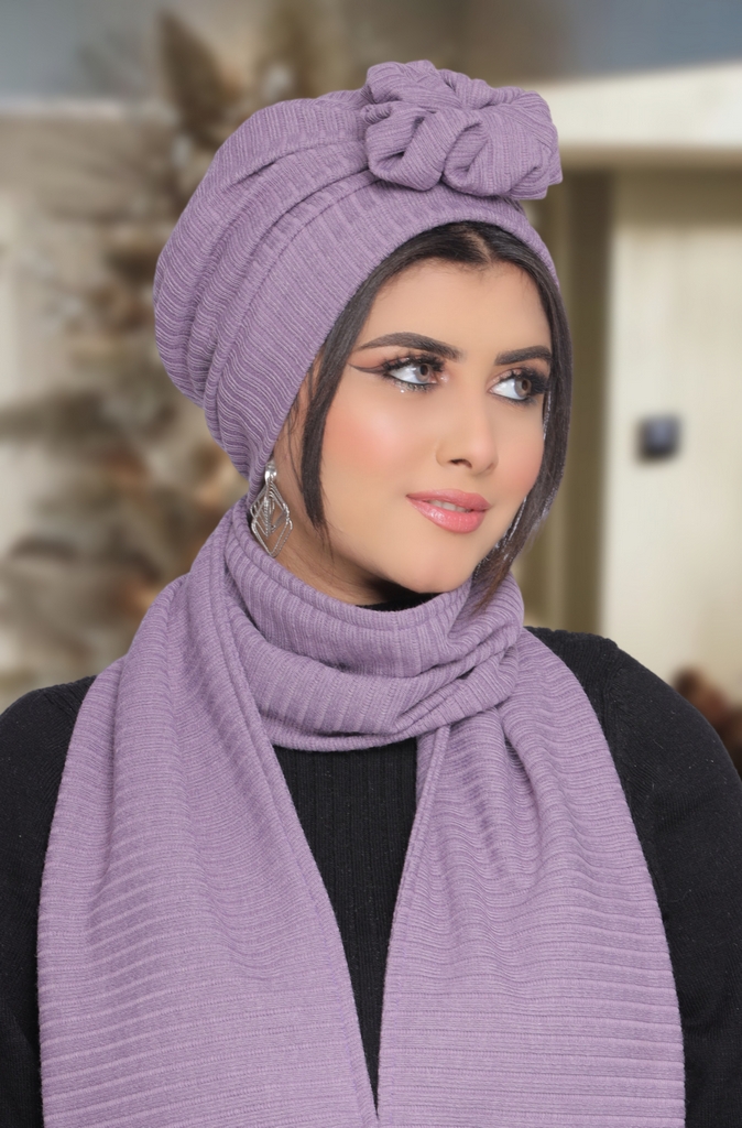 Turban & Scarf One piece rose Rib - Smile Turbans - 1755
