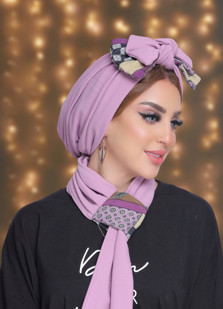 Turban & Scarf Tied bow crepe material - Smile Turbans - 2067 -