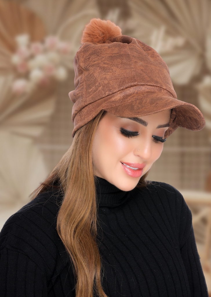 Cap Cap with fur ball suede - Smile Turbans - 2097 -