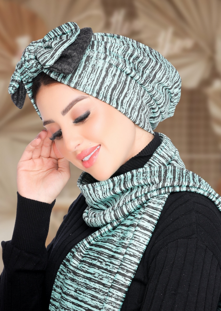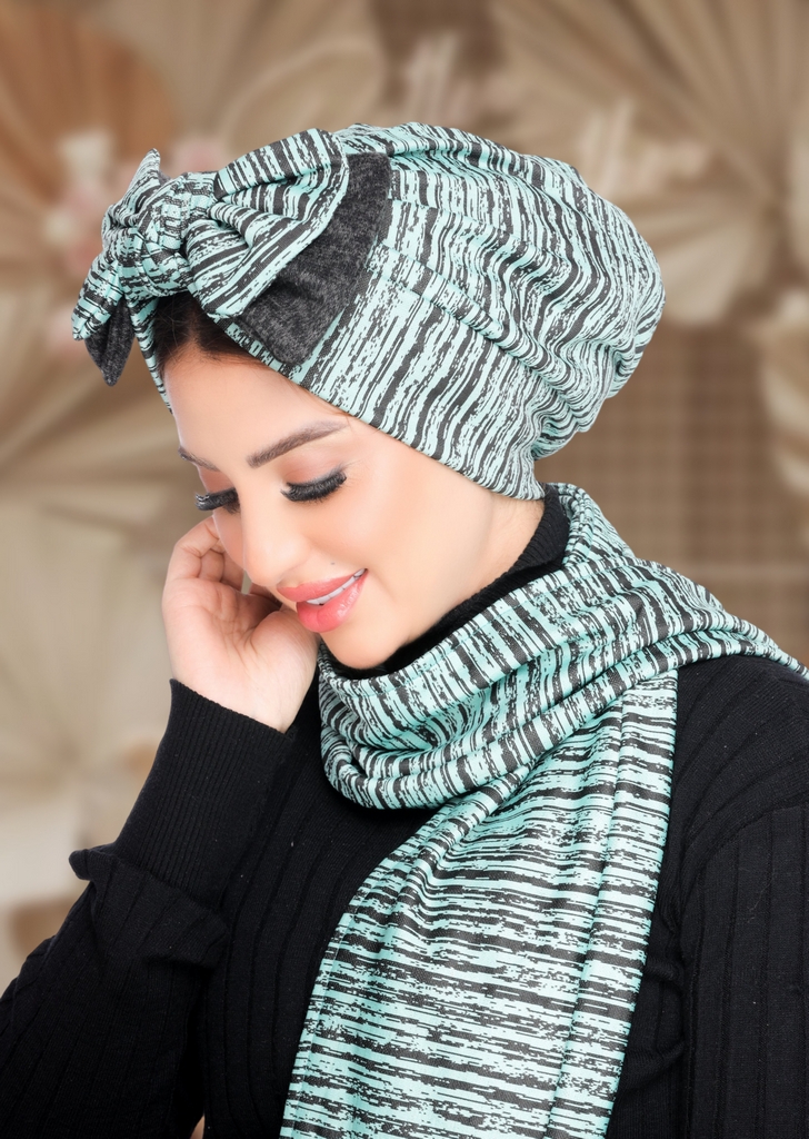 Turban & Scarf 2 bow wool - Smile Turbans - 2131