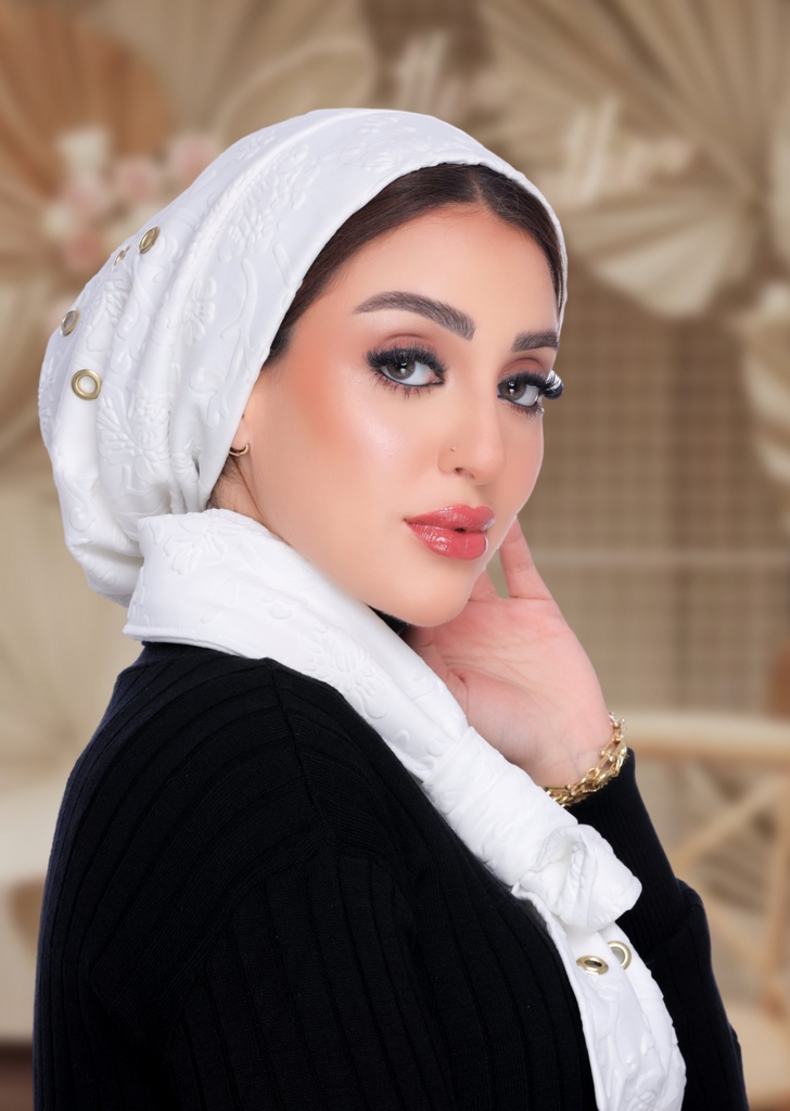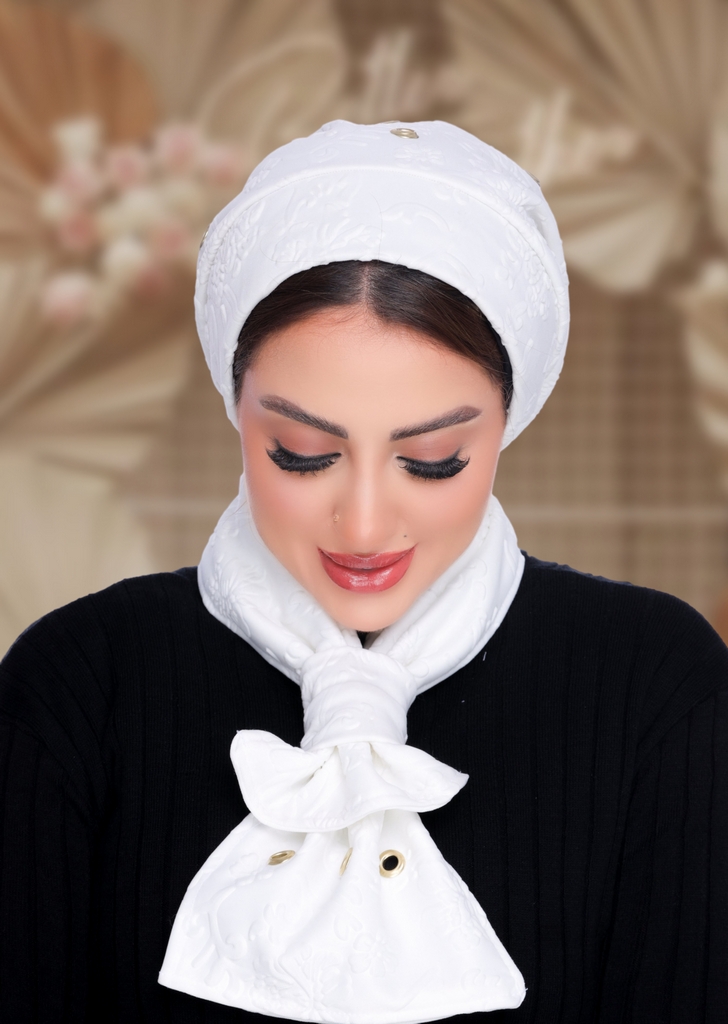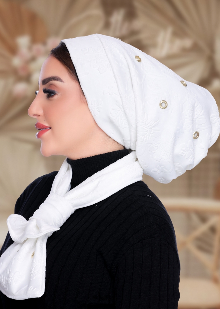 IceCap & Scarf t with metallic eyelet details crepe material - Smile Turbans - 2155